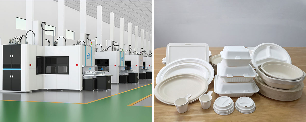 浙江歐亞聯(lián)合裝備集團(tuán)有限公司 / 浙江歐亞輕工裝備制造有限公司(EAMC),長期專業(yè)從事國際先進(jìn)EAMC全自動紙漿模塑生產(chǎn)設(shè)備、紙漿模塑餐具生產(chǎn)設(shè)備、紙漿模塑杯蓋生產(chǎn)設(shè)備和精致紙漿模塑工業(yè)包裝制品生產(chǎn)設(shè)備-全自動紙漿模塑成型定型切邊一體機(jī)的研發(fā)、生產(chǎn)、成套和各種植物纖維模塑(紙漿模塑)制品的開發(fā)和生產(chǎn),歐亞輕工是浙江省"專精特新企業(yè)"。在紙漿模塑制品及紙漿模塑成型模具的研究和開發(fā)領(lǐng)域有豐富的經(jīng)驗,利用可再生的植物資源如麥草、蘆葦、甘蔗渣等植物纖維,經(jīng)過模塑的方法,生產(chǎn)各種纖維日用品、纖維紙模餐具、纖維紙模托盤、纖維紙模工業(yè)品防震墊和包裝托盤、非平面的纖維紙模裝飾墻板以及非平面的纖維紙模立體制品。一體機(jī)設(shè)備獲得了省首臺套證書。